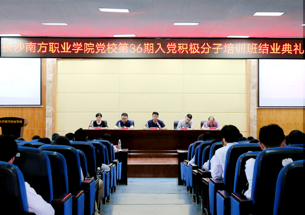 6月7日下午,長沙南方職業(yè)學(xué)院黨校在學(xué)術(shù)報告廳舉行第36期入黨積極分子培訓(xùn)班結(jié)業(yè)典禮。省政府督導(dǎo)專員、黨委書記趙小群、宣傳部長、組織部長、學(xué)工部長、紀(jì)檢監(jiān)察室主任、各黨總支書記、副書記、指導(dǎo)老師、優(yōu)秀學(xué)員、優(yōu)秀組長及學(xué)員代表共計300余人參加結(jié)業(yè)典禮。結(jié)業(yè)典禮由宣傳部長嚴(yán)曉蕾主持。
